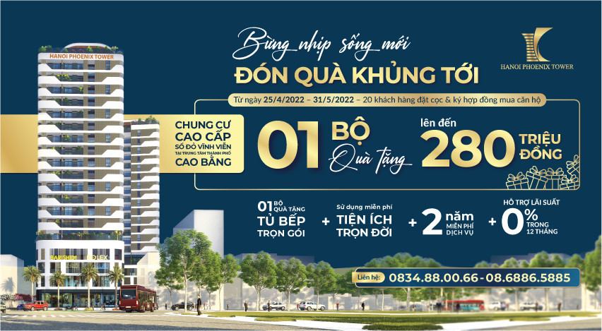 Chương trình “Bừng nhịp sống mới – Đón quà khủng tới” dành tặng cho quý khách hàng đặt cọc và ký hợp đồng mua bán trong tháng 5 nay: 01 bộ quà tặng lên đến 280 triệu đồng: 01 bộ quà tặng tủ bếp trọn gói, 02 năm miễn phí dịch vụ, sử dụng miễn phí tiện ích trọn đời, hỗ trợ lãi suất 0% trong vòng 12 tháng … và nhiều chính sách “KHỦNG” khác. Sau khi thị trường du lịch hồi phục, những căn hộ cao cấp tại Phoenix Phố Thầu sẽ đón đầu nhu cầu lưu trú của khách du lịch trong và ngoài nước đến với Cao Bằng. Tuy nhiên, cơ hội chỉ dành cho những nhà đầu tư, khách hàng cư dân thông thái nhìn nhận và đánh giá được tiềm năng của thị trường ngay từ bây giờ.